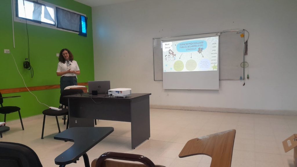 La licenciada en Fonoaudiología María Laura Lojda aportó su mirada profesional. “El entorno comunicativo influye de manera directa en el crecimiento integral de niños y niñas”, se destacó durante la jornada. La capacitación sumó herramientas para la práctica educativa.
